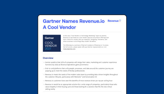 Revenue.io is honored to be part of Gartner’s 2022 CRM Sales Tech Hype Cycle Report as a Sales Engagement Vendor.…
